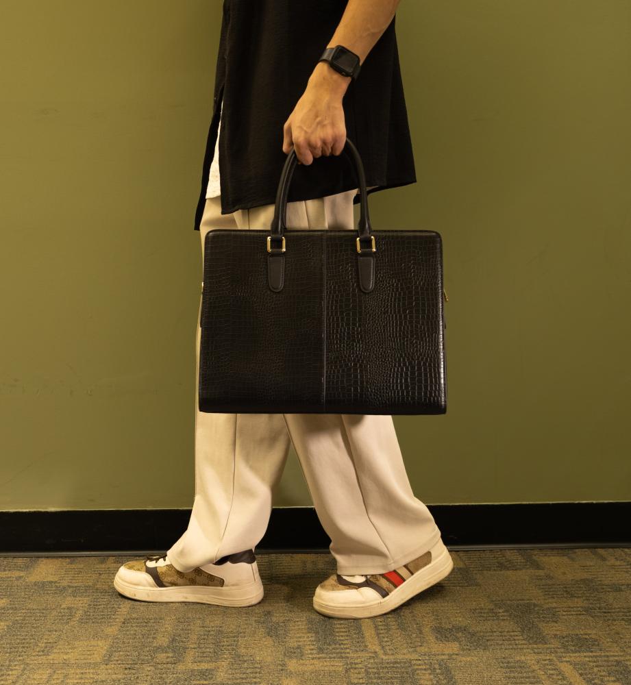 تجمع الحقيبة بين الأناقة والوظائف العملية، حيث يأتي التصميم بتفاصيل جلد التمساح الذي يضيف لمسة من الفخامة لعالم التكنولوجيا. سواء كنت في العمل أو في أي مشوار يومي، الحقيبة تمنحك مظهرًا عصريًا يعكس ذوقك الرفيع.